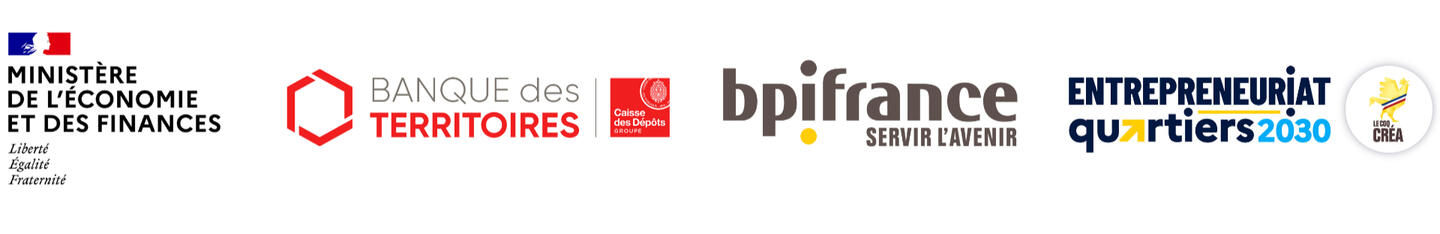 Nos parcours sont soutenus par Bpifrance dans le cadre de l'initiative gouvernementale « Entrepreneuriat Quartiers 2030 » visant à soutenir l'entrepreneuriat dans les quartiers prioritaires de la politique de la ville (QPV).